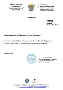 19Circolare N°19 Sospensione Attività Didattica Ponte Di Ognissanti