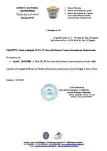 38.Circolare N°38 Uscita Anticipata Cl. II E IV Liceo