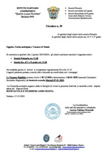 39.Circolare N°39 Uscita Anticipata 20 12 2024 E Vacanze Natalizie