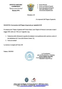 83.Circolare N. 83 Convocazione Organo Di Garanzia 6 5 25