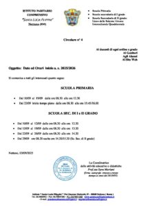 4.Circolare N°4 Date Ed Orario Inizio A.s. 2025 2026