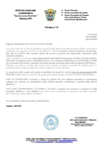 37.Circolare N° 37 Disposizione Su Ingresso A Scuola