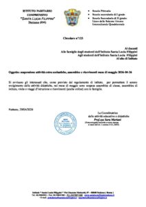 123.Circolare N°123 Sospensione Attività Extra Scolastiche, Assemblee E Ricevimenti Mese Di Maggio